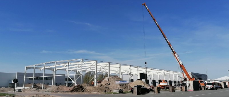 Voor die gelegenheid werden alle kranen, hoogwerkers, schaarliften en alle rijdend materiaal op de personeelsparking geplaatst. Een indrukwekkend tafereel !